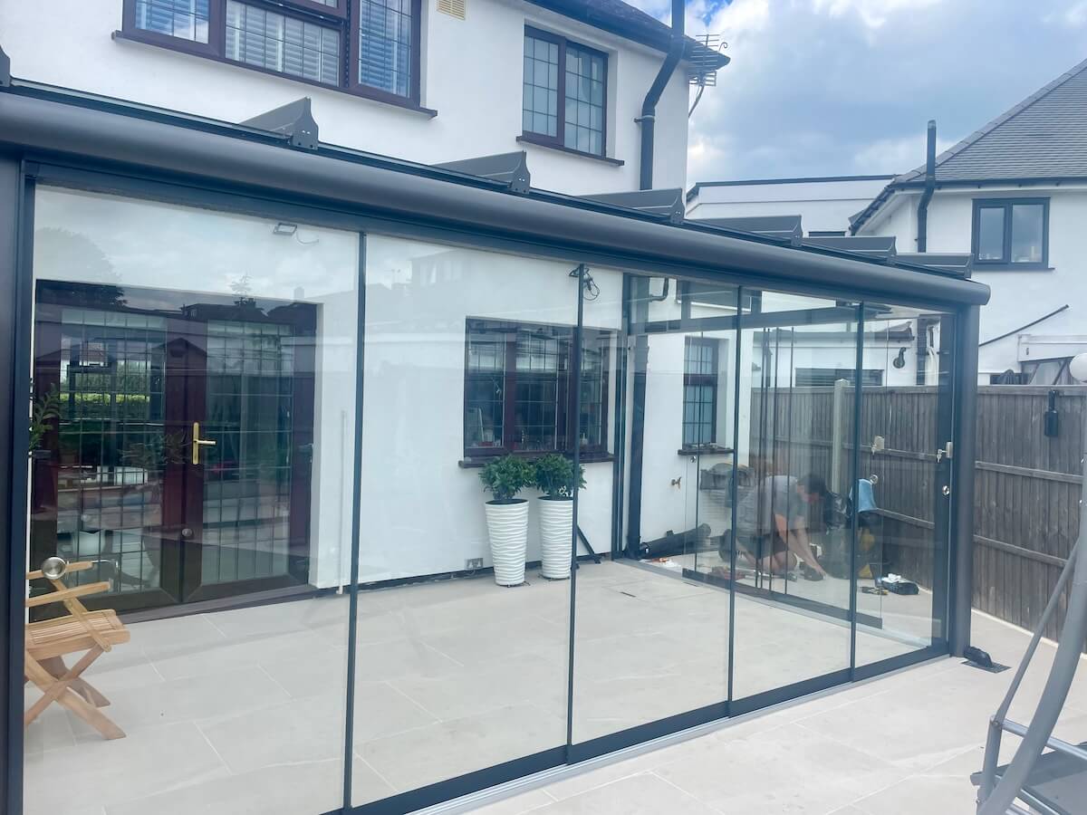 SBI supply and install awnings, patio roofs, glass verandas, terrace covers, retractable all-weather pergolas, giant umbrellas, canopies, vertical screens, heating, lighting, and conservatory sail blinds.
